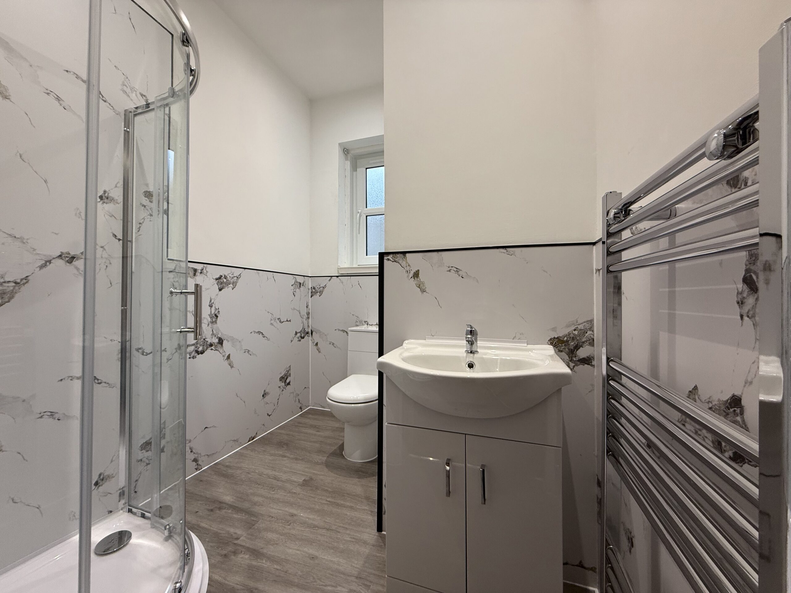 The heart of the home is a bright, spacious open plan living kitchen area featuring large brand new double glazing windows that flood the space with natural light. The brand-new, contemporary kitchen is fitted with high-quality appliances, perfect for modern living. Both bedrooms are well-proportioned doubles, 1 with a raised double bed frame giving ample storage options below. The stylish, newly installed bathroom features premium wet wall and a free standing stunning shower.